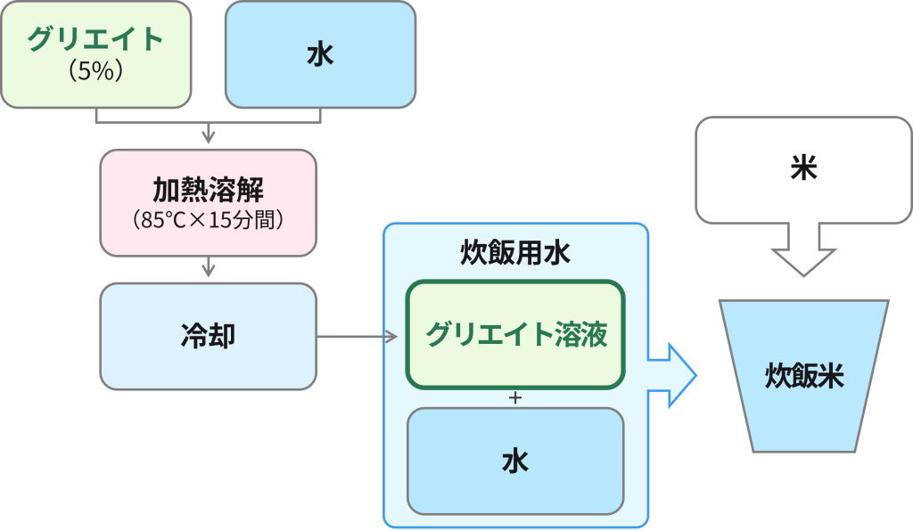 グリエイトは、炊飯品質の向上と加工適性の改善を両立できます。既存の製造工程に大きな変更を加えることなく、製品の魅力を高めることができます。歩留まり向上や食感改善を目指す現場において、グリエイトをぜひお試しください。